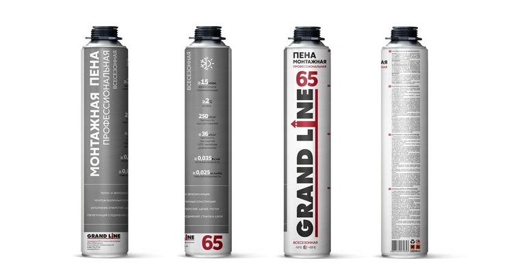 Пена монтажная профессиональная Grand Line всесезонная поставляется в металлических баллонах по 1000 мл (16 шт в упаковке).